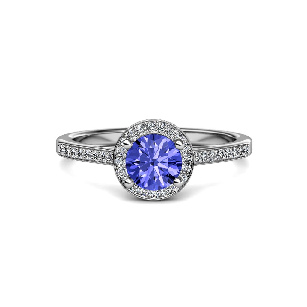1 1/4 ctw Round Tanzanite and Diamond Womens Halo Engagement Ring 18K White Gold More Details ...