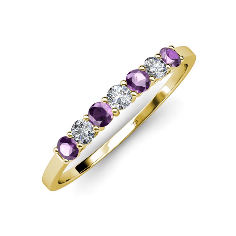 Amethyst and Diamond 0.62 ctw 7 Stone Side Gallery Womens Wedding Band Stackable 18K Yellow Gold More Details ...