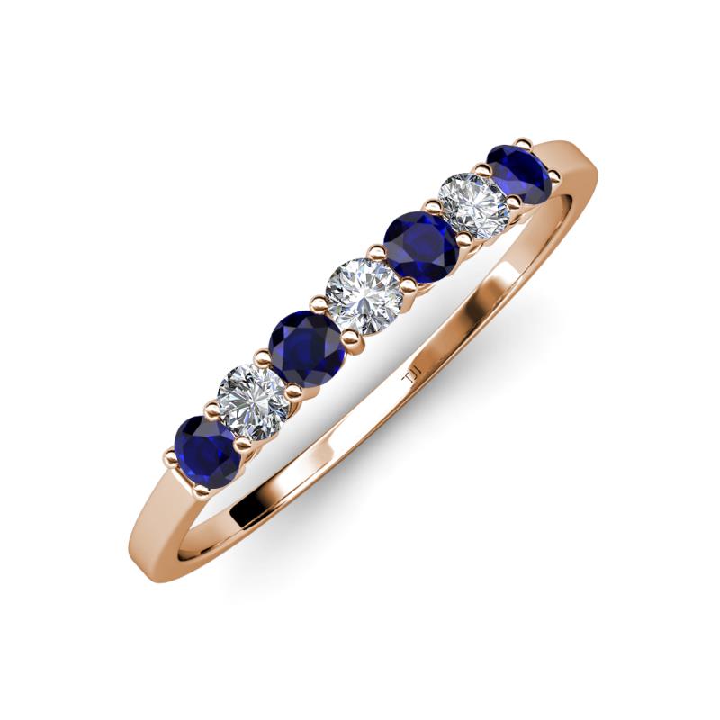 Blue Sapphire and Diamond 0.72 ctw 7 Stone Side Gallery Womens Wedding Band Stackable 18K Rose Gold More Details ...