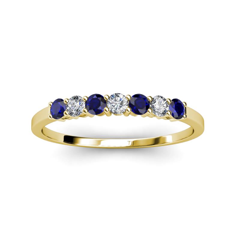 Blue Sapphire and Lab Grown Diamond 0.72 ctw 7 Stone Side Gallery Womens Wedding Band Stackable 14K Yellow Gold More Details ...
