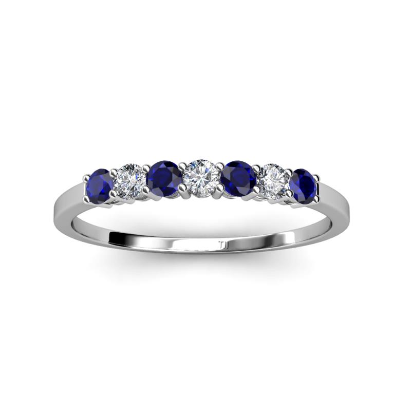 Blue Sapphire and Lab Grown Diamond 0.72 ctw 7 Stone Side Gallery Womens Wedding Band Stackable Sterling Silver More Details ...