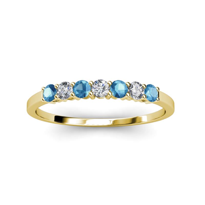 Blue Topaz and Lab Grown Diamond 0.66 ctw 7 Stone Side Gallery Womens Wedding Band Stackable 14K Yellow Gold More Details ...