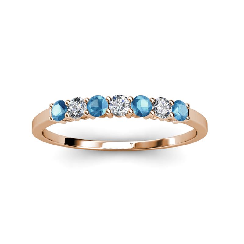 Blue Topaz and Lab Grown Diamond 0.66 ctw 7 Stone Side Gallery Womens Wedding Band Stackable 18K Rose Gold More Details ...
