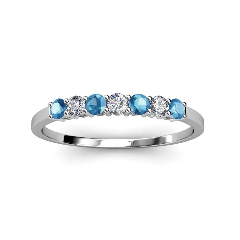Blue Topaz and Lab Grown Diamond 0.66 ctw 7 Stone Side Gallery Womens Wedding Band Stackable 10K White Gold More Details ...