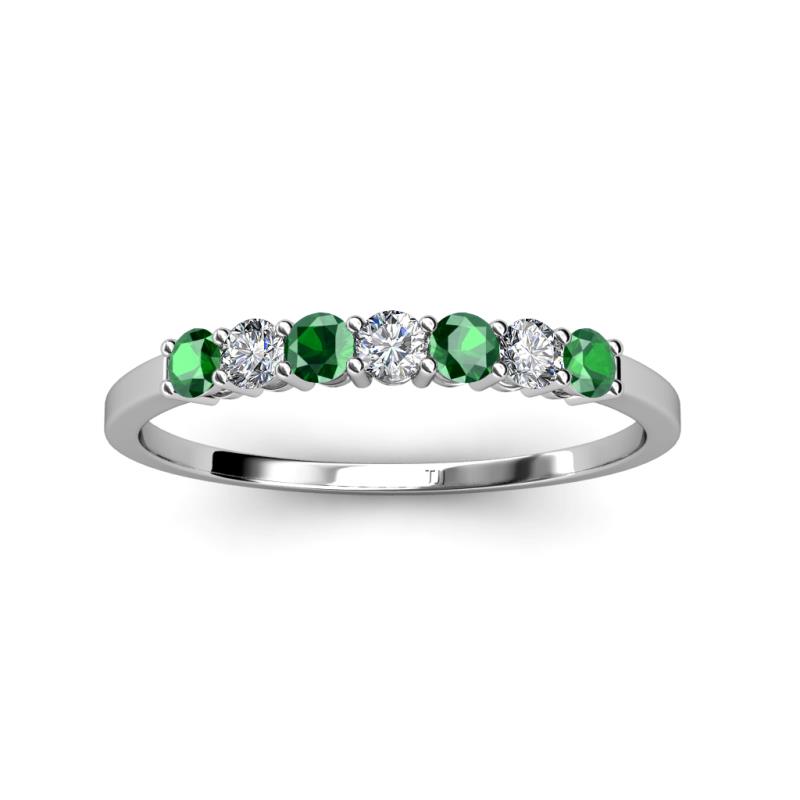 Emerald and Lab Grown Diamond 0.62 ctw 7 Stone Side Gallery Womens Wedding Band Stackable Sterling Silver More Details ...