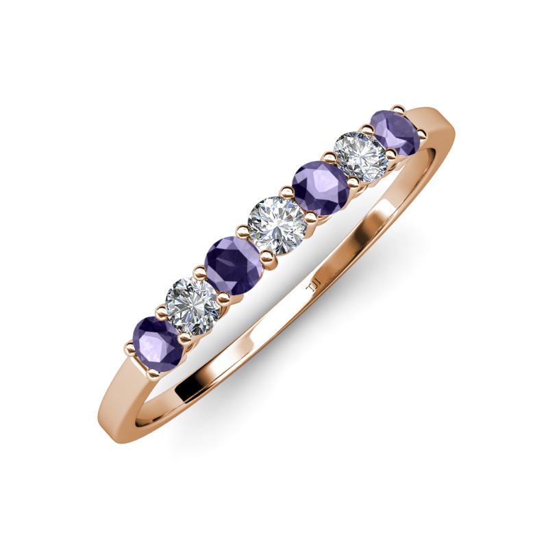 Iolite and Diamond 0.62 ctw 7 Stone Side Gallery Womens Wedding Band Stackable 14K Rose Gold More Details ...