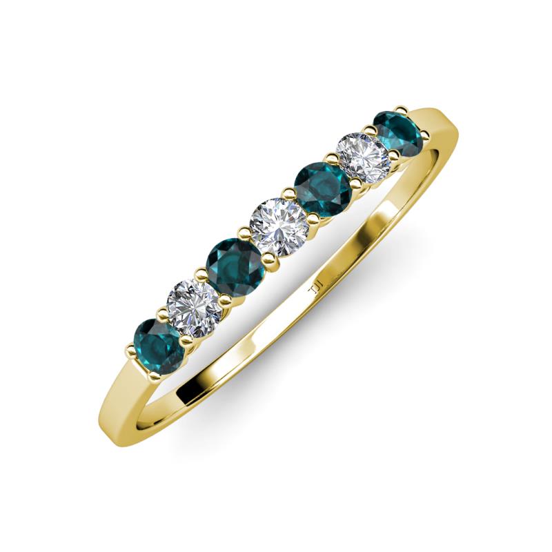 London Blue Topaz and Diamond 0.74 ctw 7 Stone Side Gallery Womens Wedding Band Stackable 10K Yellow Gold More Details ...