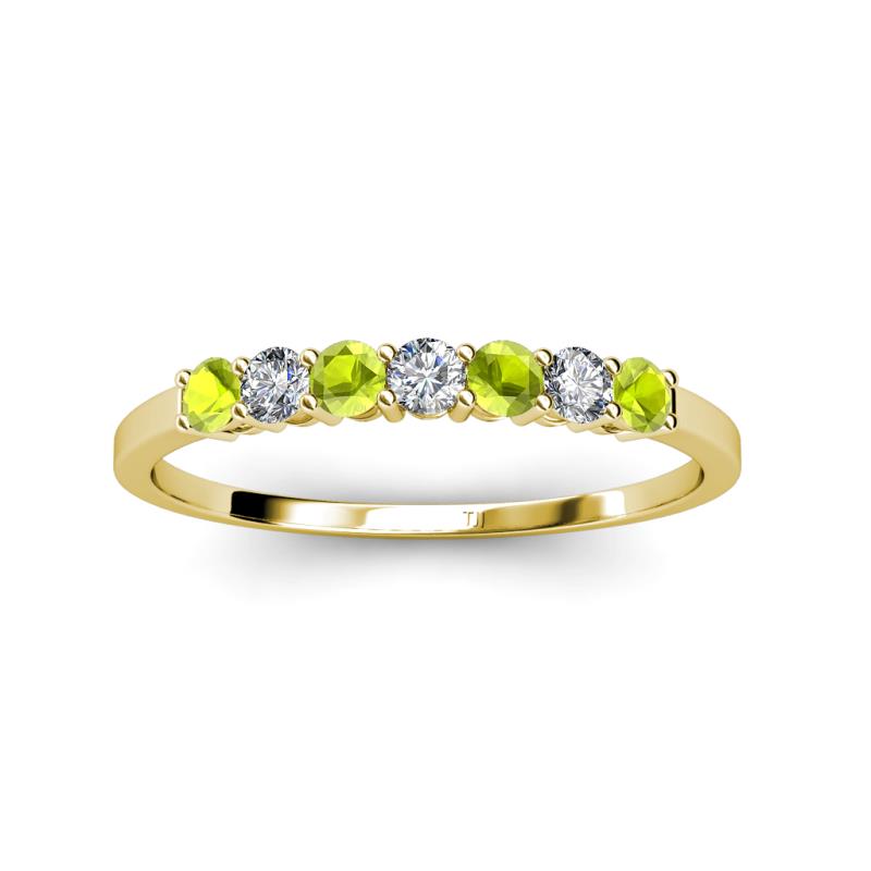Peridot and Lab Grown Diamond 0.76 ctw 7 Stone Side Gallery Womens Wedding Band Stackable 18K Yellow Gold More Details ...