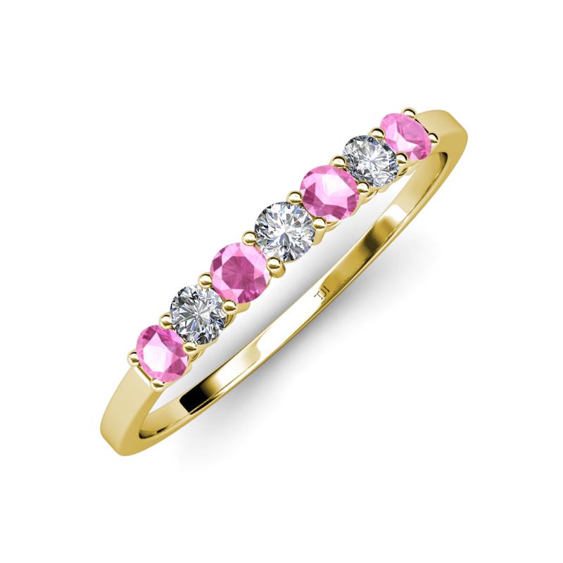 Pink Sapphire and Diamond 0.72 ctw 7 Stone Side Gallery Womens Wedding Band Stackable 10K Yellow Gold More Details ...