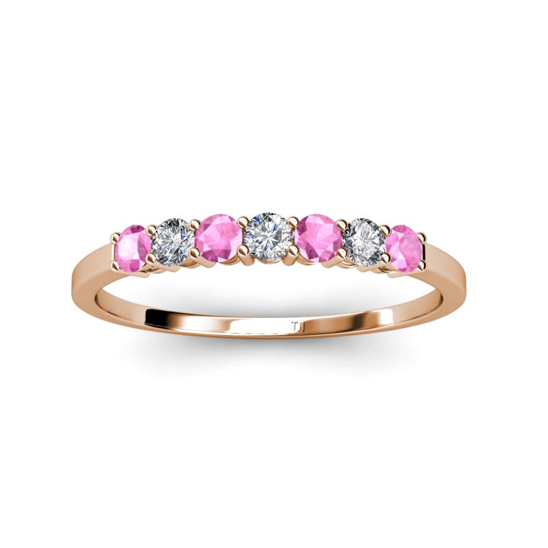 Pink Sapphire and Lab Grown Diamond 0.72 ctw 7 Stone Side Gallery Womens Wedding Band Stackable 10K Rose Gold More Details ...