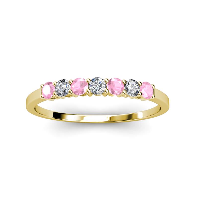 Pink Tourmaline and Lab Grown Diamond 0.62 ctw 7 Stone Side Gallery Womens Wedding Band Stackable 18K Yellow Gold More Details ...