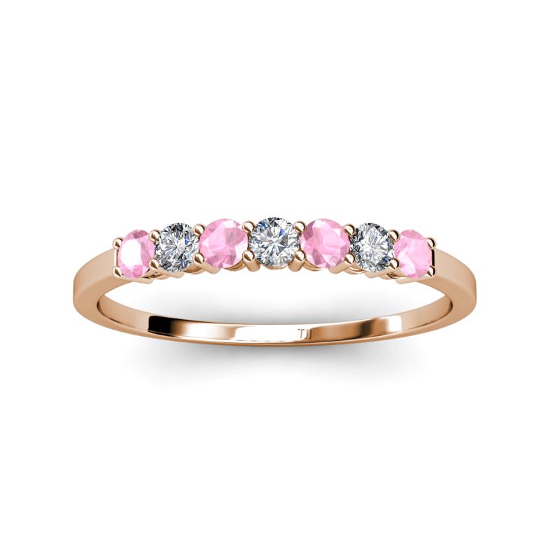 Pink Tourmaline and Lab Grown Diamond 0.62 ctw 7 Stone Side Gallery Womens Wedding Band Stackable 10K Rose Gold More Details ...