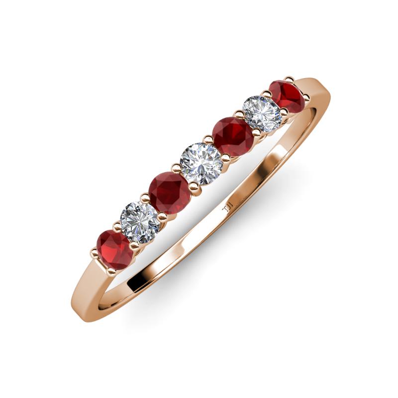 Red Garnet and Diamond 0.76 ctw 7 Stone Side Gallery Womens Wedding Band Stackable 18K Rose Gold More Details ...