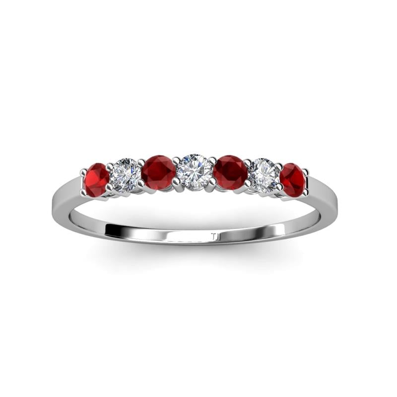 Red Garnet and Lab Grown Diamond 0.76 ctw 7 Stone Side Gallery Womens Wedding Band Stackable Sterling Silver More Details ...
