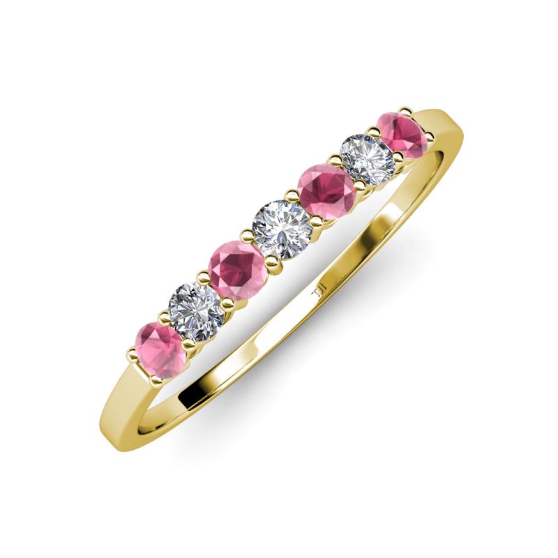 Rhodolite Garnet and Diamond 0.76 ctw 7 Stone Side Gallery Womens Wedding Band Stackable 18K Yellow Gold More Details ...
