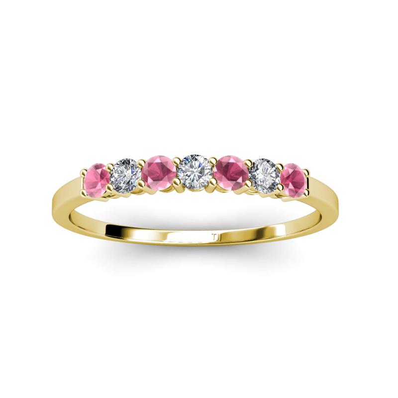 Rhodolite Garnet and Lab Grown Diamond 0.76 ctw 7 Stone Side Gallery Womens Wedding Band Stackable 18K Yellow Gold More Details ...