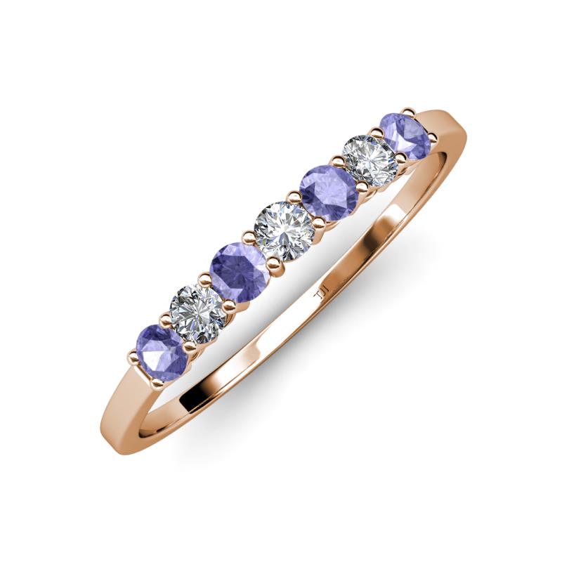 Tanzanite and Diamond 0.66 ctw 7 Stone Side Gallery Womens Wedding Band Stackable 14K Rose Gold More Details ...
