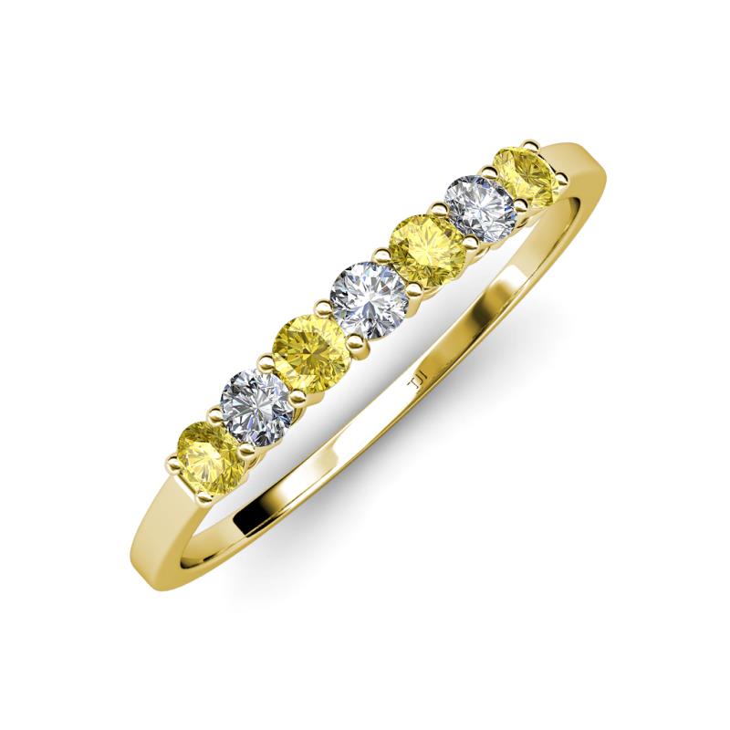 Yellow Sapphire and Diamond 0.72 ctw 7 Stone Side Gallery Womens Wedding Band Stackable 10K Yellow Gold More Details ...
