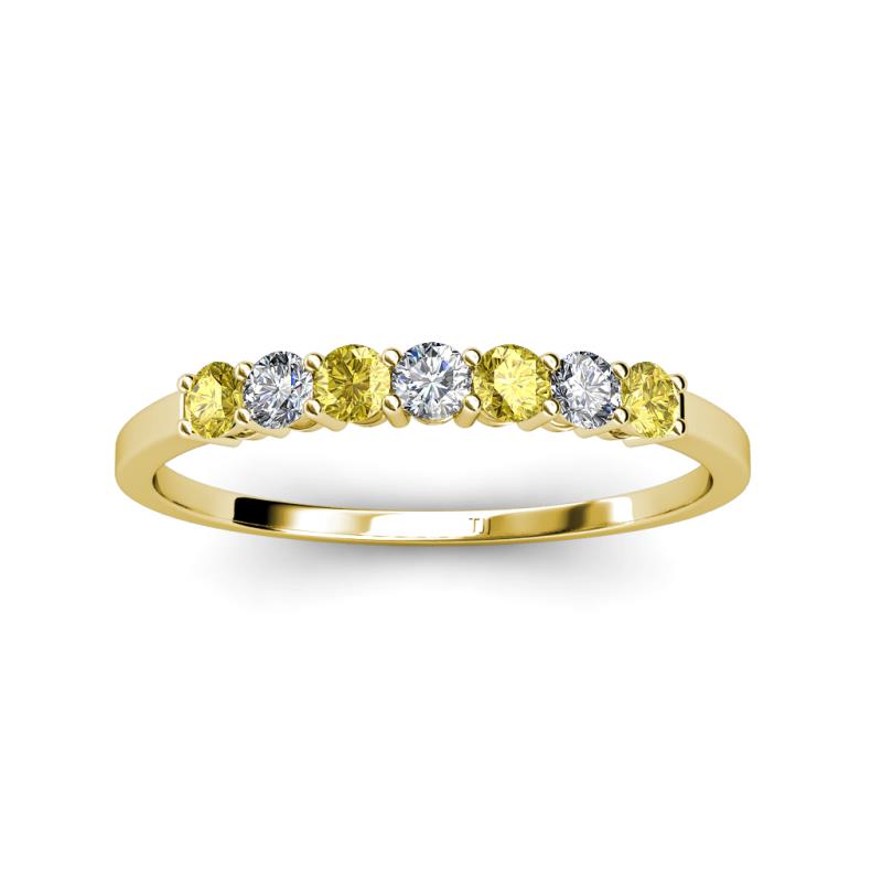 This is a Gorgeous Side Gallery 7 Stone Womens Wedding Band Stackable with Series of Glittering Round Yellow Sapphire and Lab Grown Diamond that will make your Wedding Vow Special & Memorable.