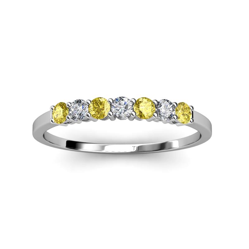 This is a Gorgeous Side Gallery 7 Stone Womens Wedding Band Stackable with Series of Glittering Round Yellow Sapphire and Lab Grown Diamond that will make your Wedding Vow Special & Memorable.