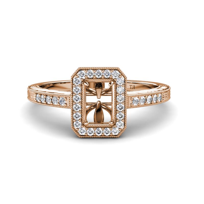 Round Diamond 0.32 ctw Semi Mount Womens Leaf Engraved Halo Engagement Ring Setting 18K Rose Gold More Details ...