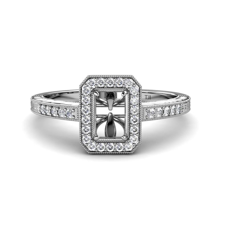 Round Diamond 0.32 ctw Semi Mount Womens Leaf Engraved Halo Engagement Ring Setting Platinum More Details ...