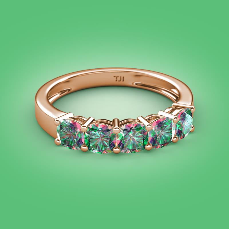Cushion Shape Created Alexandrite 2.20 ctw Side Gallery Women 5 Stone Stackable Wedding Band 10K Rose Gold More Details ...