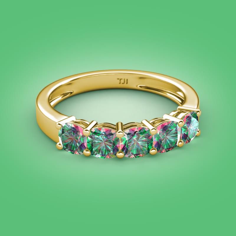 Cushion Shape Created Alexandrite 2.20 ctw Side Gallery Women 5 Stone Stackable Wedding Band 10K Yellow Gold More Details ...