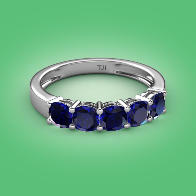 Cushion Shape Created Blue Sapphire 2.20 ctw Side Gallery Women 5 Stone Stackable Wedding Band 10K White Gold More Details ...