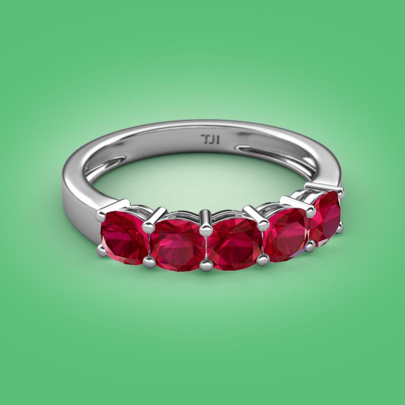 Cushion Shape Created Ruby 2.20 ctw Side Gallery Women 5 Stone Stackable Wedding Band Platinum More Details ...
