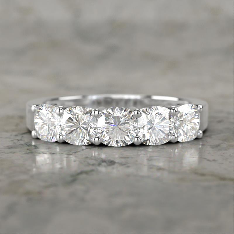 Bring on the bling with this ring of 1.85 ctw Cushion Shape Lab Grown Diamond Side Gallery 5 Stone Wedding Band, for those who want everyone to know that they’ve found love.