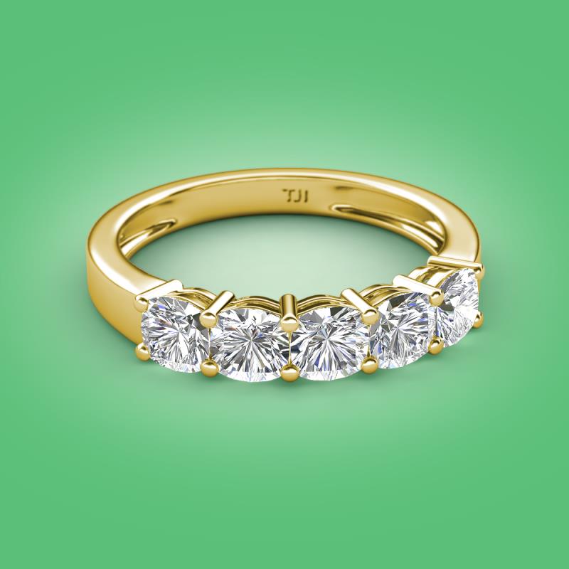 Cushion Shape Moissanite 1.50 ctw Side Gallery Women 5 Stone Stackable Wedding Band 10K Yellow Gold More Details ...