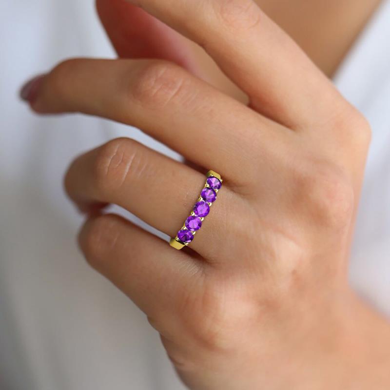 Round Amethyst 1.00 ctw Side Gallery Women 5 Stone Stackable Wedding Band 10K Yellow Gold More Details ...
