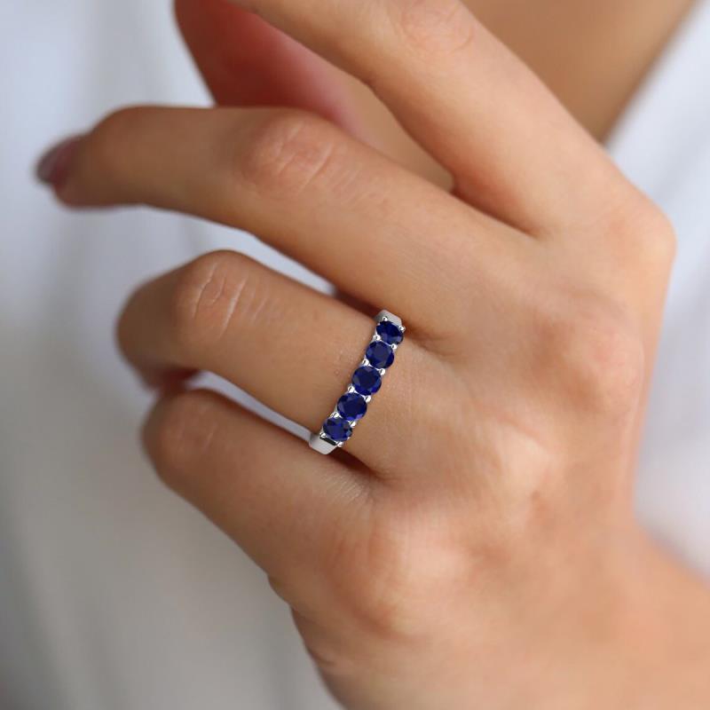 Round Blue Sapphire 1.50 ctw Side Gallery Women 5 Stone Stackable Wedding Band Sterling Silver More Details ...