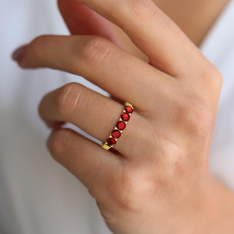 Round Red Garnet 1.60 ctw Side Gallery Women 5 Stone Stackable Wedding Band 18K Yellow Gold More Details ...
