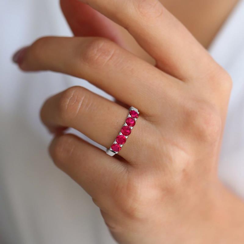 Round Ruby 1.30 ctw Side Gallery Women 5 Stone Stackable Wedding Band Sterling Silver More Details ...
