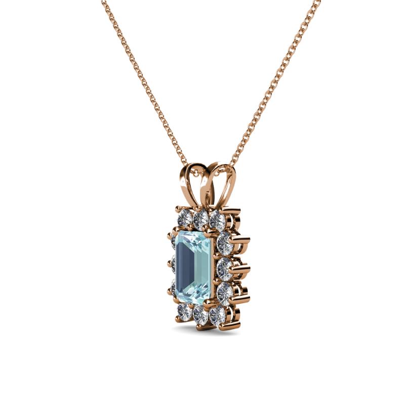 Emerald Cut (6x4 mm) Aquamarine and Diamond Womens Halo Pendant Necklace 0.74 ctw 14K Rose Gold.Included 18 Inches 14K Rose Gold Chain More Details ...