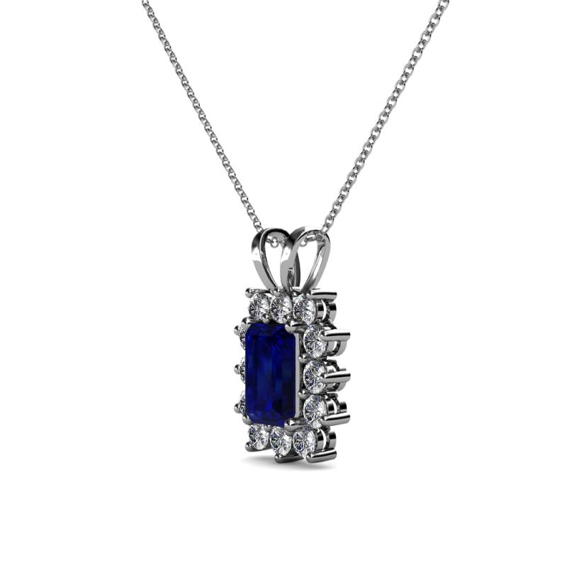 Emerald Cut (6x4 mm) Blue Sapphire and Diamond Womens Halo Pendant Necklace 0.82 ctw 14K White Gold.Included 18 Inches 14K White Gold Chain More Details ...