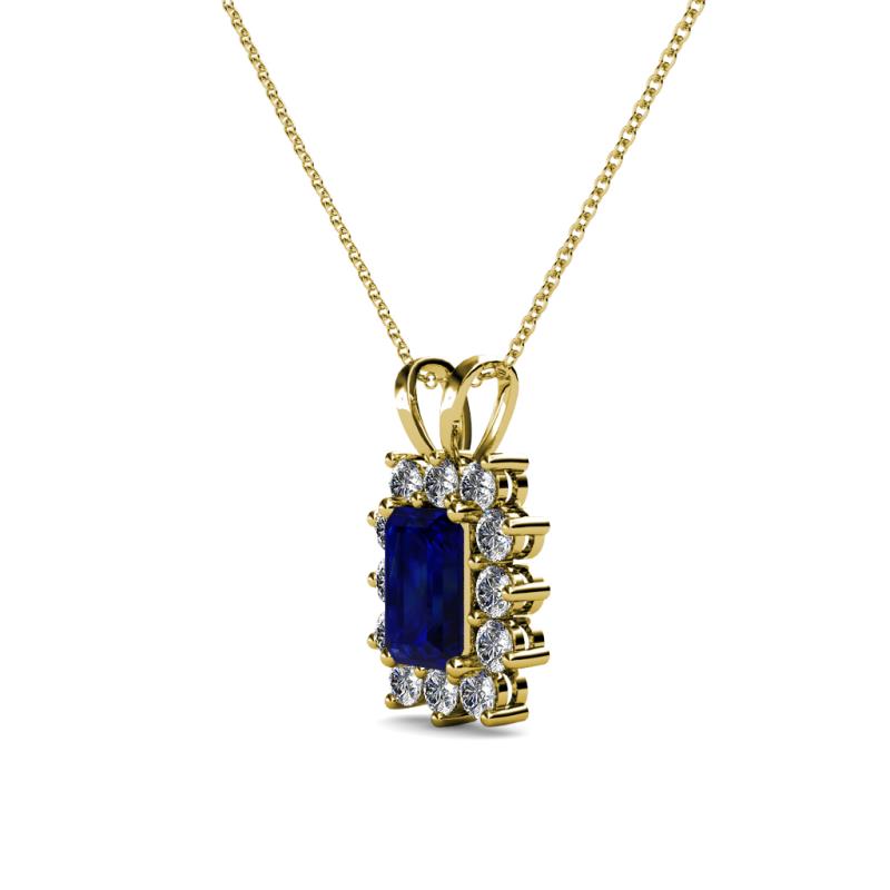 Emerald Cut (6x4 mm) Blue Sapphire and Diamond Womens Halo Pendant Necklace 0.82 ctw 14K Yellow Gold.Included 18 Inches 14K Yellow Gold Chain More Details ...