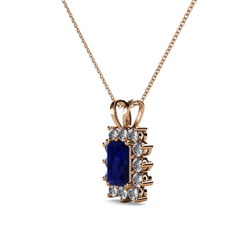Emerald Cut (6x4 mm) Blue Sapphire and Diamond Womens Halo Pendant Necklace 0.82 ctw 14K Rose Gold.Included 18 Inches 14K Rose Gold Chain More Details ...