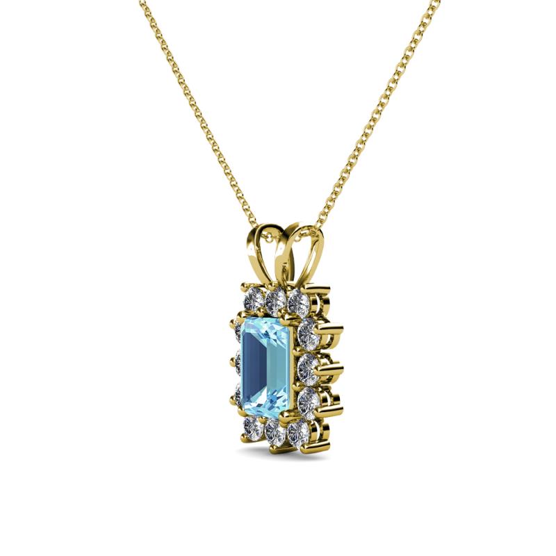Emerald Cut (6x4 mm) Blue Topaz and Diamond Womens Halo Pendant Necklace 0.79 ctw 14K Yellow Gold.Included 18 Inches 14K Yellow Gold Chain More Details ...