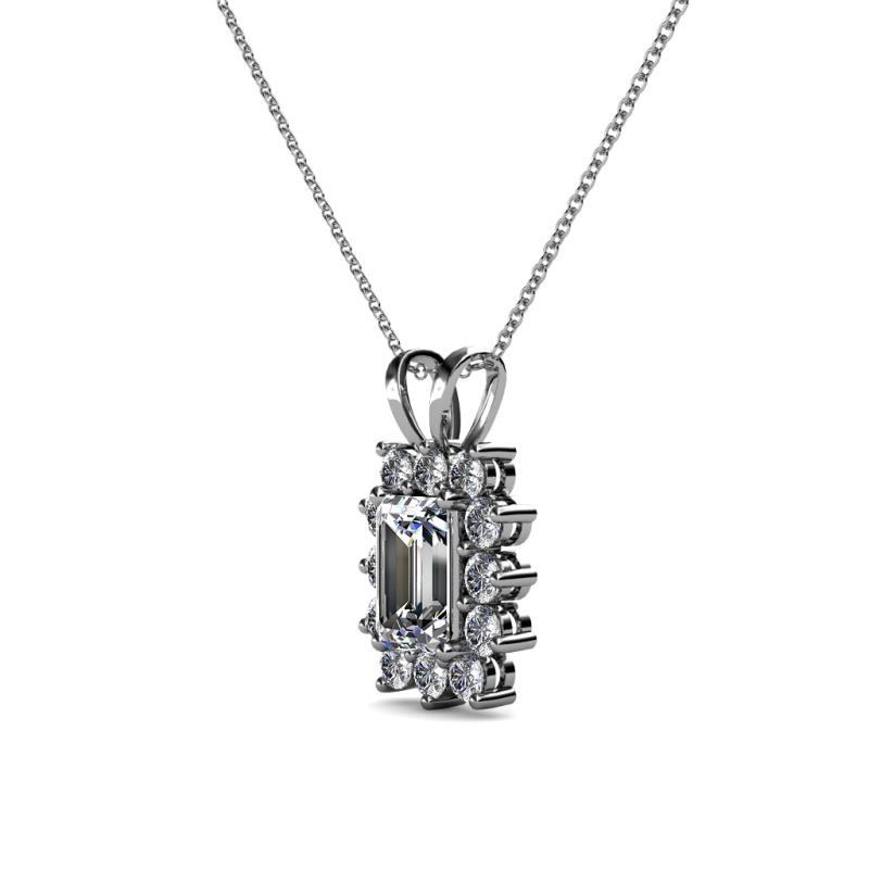 Emerald Cut (6x4 mm) Diamond Womens Halo Pendant Necklace 0.79 ctw 14K White Gold.Included 18 Inches 14K White Gold Chain More Details ...