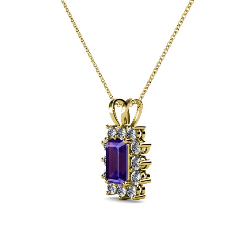 Emerald Cut (6x4 mm) Iolite and Diamond Womens Halo Pendant Necklace 0.74 ctw 14K Yellow Gold.Included 18 Inches 14K Yellow Gold Chain More Details ...
