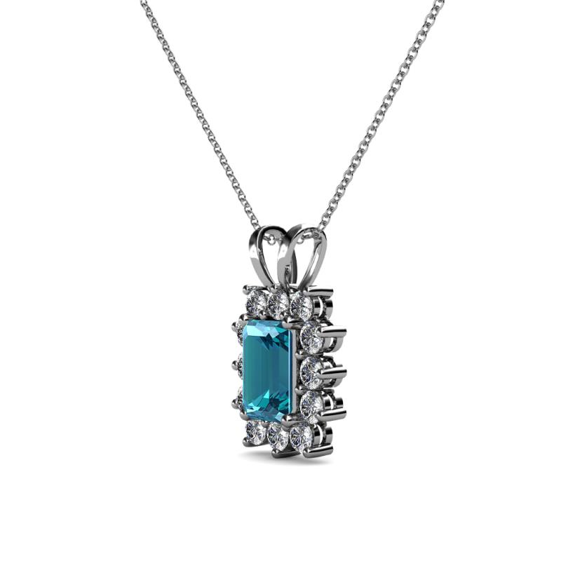 Emerald Cut (6x4 mm) London Blue Topaz and Diamond Womens Halo Pendant Necklace 0.79 ctw 14K White Gold.Included 18 Inches 14K White Gold Chain More Details ...