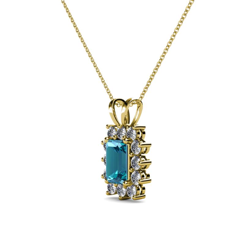 Emerald Cut (6x4 mm) London Blue Topaz and Diamond Womens Halo Pendant Necklace 0.79 ctw 14K Yellow Gold.Included 18 Inches 14K Yellow Gold Chain More Details ...