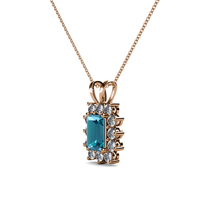 Emerald Cut (6x4 mm) London Blue Topaz and Diamond Womens Halo Pendant Necklace 0.79 ctw 14K Rose Gold.Included 18 Inches 14K Rose Gold Chain More Details ...