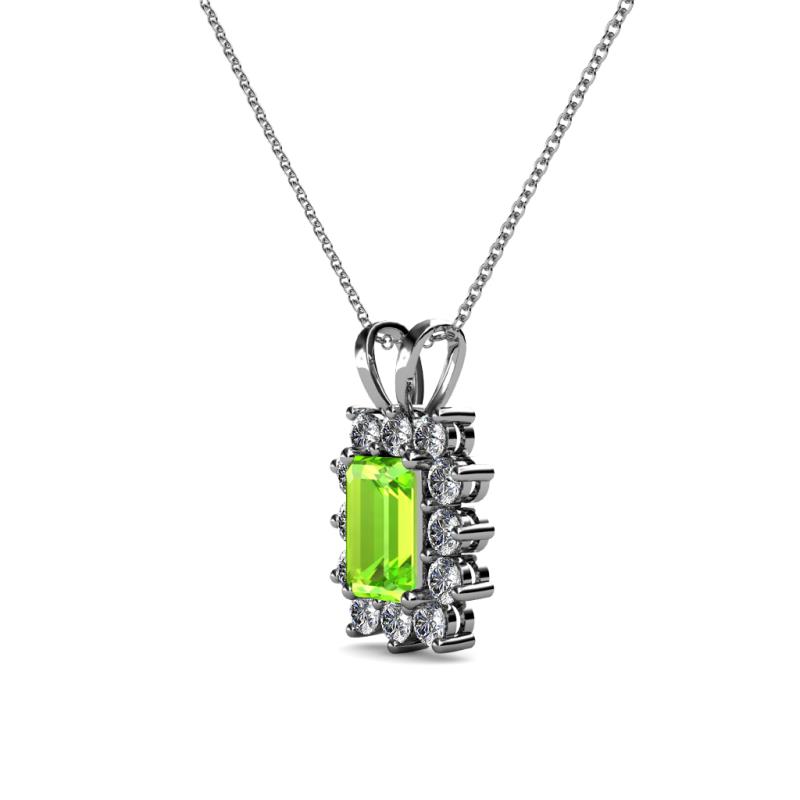 Emerald Cut (6x4 mm) Peridot and Diamond Womens Halo Pendant Necklace 0.79 ctw 14K White Gold.Included 18 Inches 14K White Gold Chain More Details ...