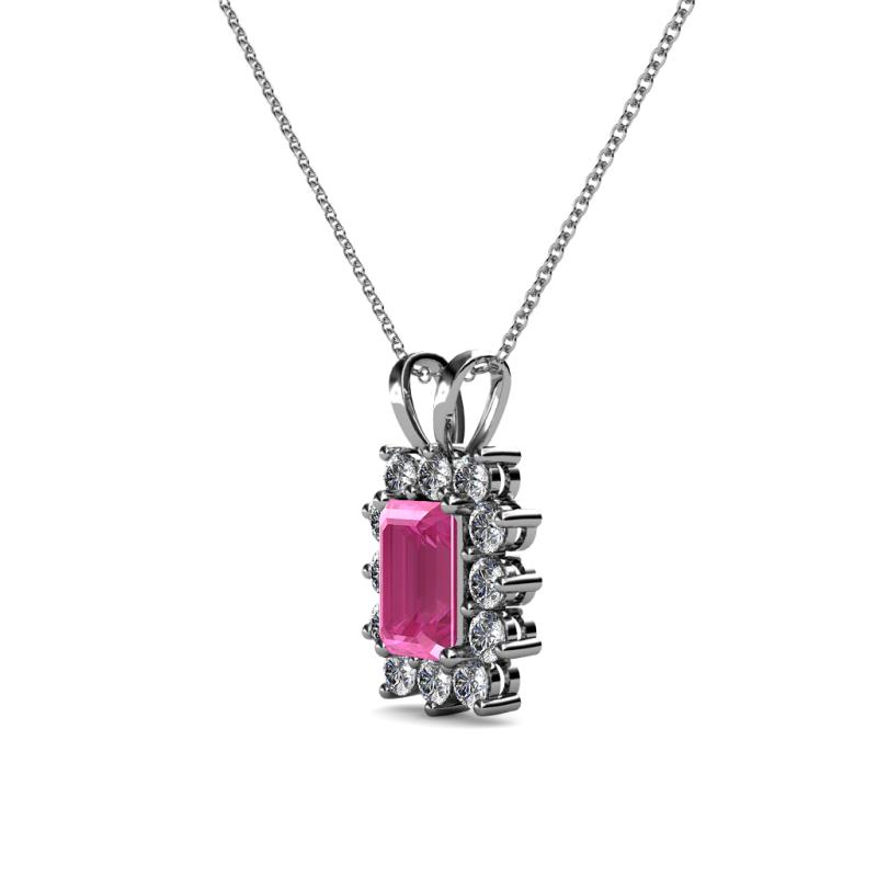 Emerald Cut (6x4 mm) Pink Sapphire and Diamond Womens Halo Pendant Necklace 0.82 ctw 14K White Gold.Included 18 Inches 14K White Gold Chain More Details ...