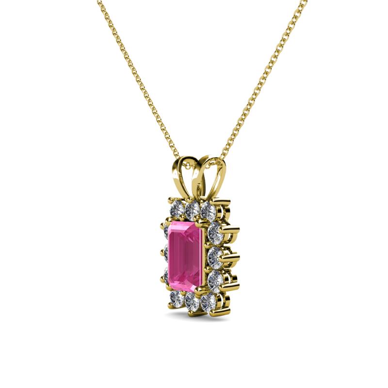 Emerald Cut (6x4 mm) Pink Sapphire and Diamond Womens Halo Pendant Necklace 0.82 ctw 14K Yellow Gold.Included 18 Inches 14K Yellow Gold Chain More Details ...