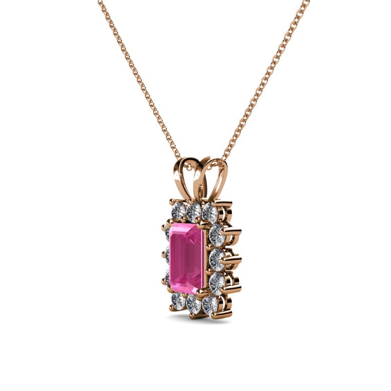 Emerald Cut (6x4 mm) Pink Sapphire and Diamond Womens Halo Pendant Necklace 0.82 ctw 14K Rose Gold.Included 18 Inches 14K Rose Gold Chain More Details ...